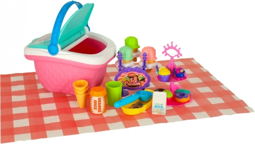 Genießen Sie das perfekte Picknick mit unserem bunten und reich ausgestatteten Picknickkorb voller Desserts und Spielzeuge. Ideal für Kinder und Erwachsene, die süße Erlebnisse beim Picknick lieben. Mehr anzeigen
