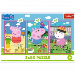 Wir präsentieren die Puzzle 3x50 Peppa Pig – Die Kraft der Freundschaft, die drei unterschiedliche Motive mit beliebten Figuren aus dem Kinderzeichentrick enthalten. Jedes Puzzle ergibt ein Bild mit den Maßen 275x180 mm – ideal für jüngere Kinder.
