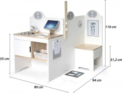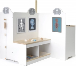Multifunktionales Gesundheitszentrum der bekannten und geschätzten Marke Viga ist ein großartiges Spielzeug, das Ihrem Kind ermöglicht, den Beruf des Arztes oder der Krankenschwester kennenzulernen. Es umfasst Behandlungsraum, Wartezimmer, Waschbecken und Rezeption zusammen mit professionellen medizinischen Instrumenten wie Stethoskop, Blutdruckmessgerät, Reflexhammer, Thermometer, Röntgengerät, Injektionsspritzen, Tabletten und Pillendosen.