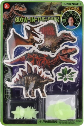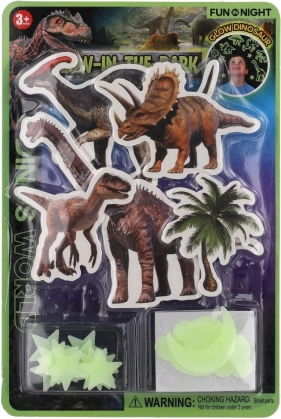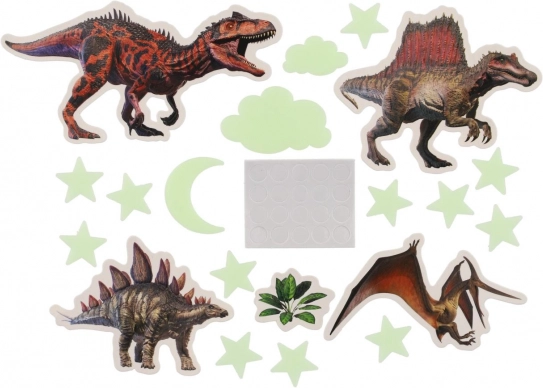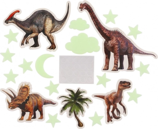 Leuchtende Dinosaurier für Wand und Decke für eine zauberhafte Kinderzimmer-Atmosphäre. Einfache Anwendung, sanftes Nachtlicht. Zwei Arten, ab 3 Jahren. Packmaße 17×25×2 cm.