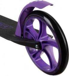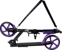 Dieser schwarz‑violette Scooter ist eine hervorragende Wahl für Kinder ab 8 Jahren und ältere Fahrer, die komfortable und sichere Stadtfahrten wünschen. Große 200‑mm-Räder dämpfen Unebenheiten und sorgen für Stabilität, während rutschfeste Trittfläche und zuverlässige Fußbremse Kontrolle in jeder Situation bieten. Der Klappmechanismus und der verstellbare Tragegurt erleichtern Transport und Aufbewahrung.