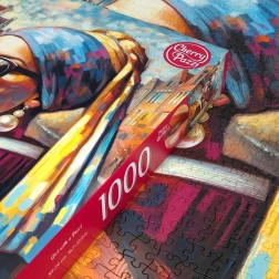 Genießen Sie ein unvergessliches Erlebnis beim Zusammensetzen mit dem Puzzle Cherry Pazzi mit dem Motiv des berühmten Kunstwerks Mädchen mit dem Perlenohrgehänge, das 1000 Teile enthält.