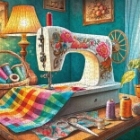 Großartiges Puzzle mit dem Motiv einer Nähecke, das die ganze Familie unterhält. Ideal für Näh- und Puzzleliebhaber.