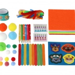 Darin finden Sie eine vielfältige Mischung an Materialien zum Collagieren, Kleben und Zeichnen: weiche Pompons, flauschige Chenille-Drahtstäbchen, Schaumstoff- oder Filzformen, Holzstäbchen, Buntstifte sowie Aufkleber mit beliebten Hundehelden. Ebenfalls enthalten sind Karten und Aktivitäten wie „Entwirf dein eigenes Wappen“, die Kreativität und Fertigkeiten fördern.