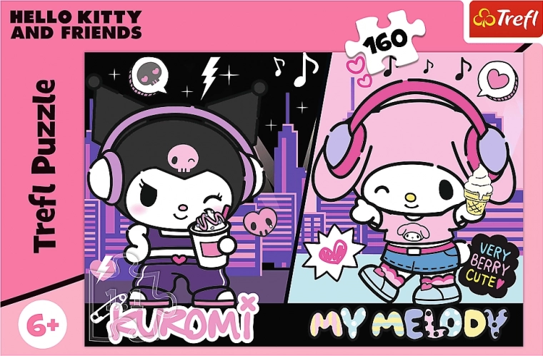 Unterhaltsames Puzzle mit dem Motiv von KUROMI und HELLO KITTY der Marke Trefl bietet 160 Teile und ergibt nach dem Zusammensetzen ein Bild mit den Maßen 410 × 275 mm. Hochwertiges, glänzend kalandriertes Papier sorgt für leuchtende Farben und sicheres Puzzeln unter Verwendung umweltfreundlicher Materialien.