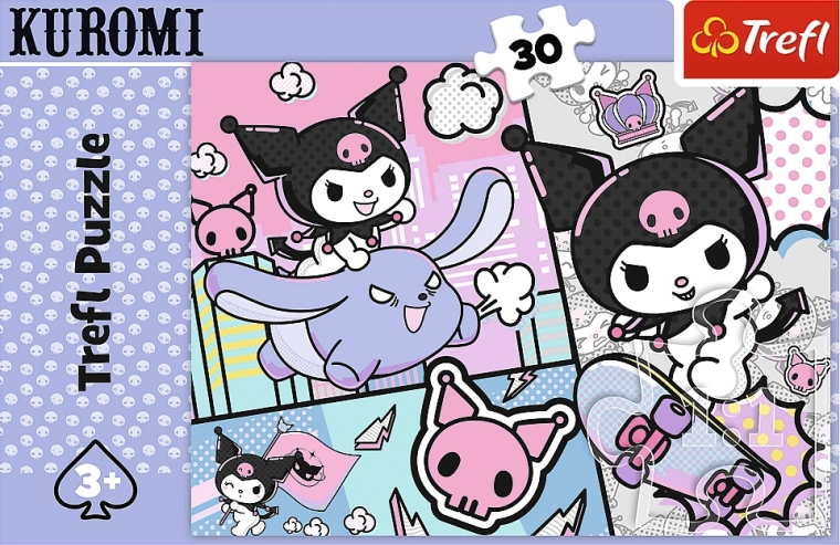 Niedliches Puzzle mit dem Motiv KUROMI, das kleine wie große Fans begeistert. Es enthält 30 Teile und ergibt zusammengesetzt ein Bild mit den Maßen 27 × 20 cm. Ideal für kurze Spielpausen sowie zur Förderung der Feinmotorik und Geduld.