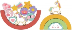 Alle Blöcke sind aus FSC-zertifiziertem Holz gefertigt, was nachhaltige Materialgewinnung garantiert. Das Spielzeug bietet nicht nur Spielspaß, sondern entwickelt auch die Feinmotorik, was kleinen Händen hilft, verschiedene Formen zu lernen und zusammenzusetzen.
