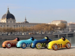 Dieses kleine Auto ist aus massivem Buchenholz gefertigt und mit traditioneller Technik von Hand lackiert. Es ist in einer attraktiven Schachtel verpackt und somit auch ideal als Geschenk oder dekoratives Element im Innenraum.