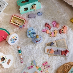 Illustrationen von Sarah Betz motivieren Kinder zur Kreativität und zum Erfinden von Geschichten. Es ist ein hervorragender Weg für Kinder, grundlegende physikalische Phänomene wie die Schwerkraft kennenzulernen. Es stehen drei thematische Versionen zur Auswahl - Tiere, Jahrmarkt und Verkehrsmittel.