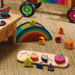 Erleben Sie die Schönheit und Funktionalität dieses Holzpuzzles nach dem Design von Andy Westface. Jedes Kind wird von den Farben und Formen begeistert sein, die dieses Spielzeug bietet. Perfekt zur Entwicklung von Konzentration, Geschicklichkeit und Hand-Auge-Koordination.