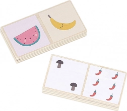 Eine Seite der Kärtchen dient zum Zuordnen gleicher Obstsorten, die andere Seite zum Zuordnen derselben Anzahl von Gemüsesorten.
