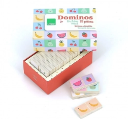 Dieses schön illustrierte Domino von Sarah Betz ist nicht nur unterhaltsam, sondern auch lehrreich. Kinder lernen gleiches Obst und Gemüse zu erkennen und zuzuordnen.