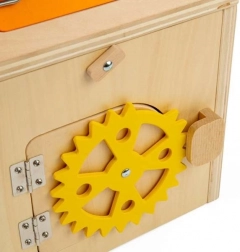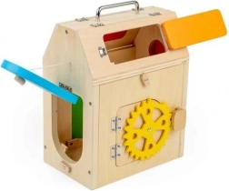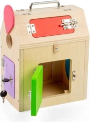 Das Bigjigs Toys Aktivitätstafel Haus ist ein multifunktionales Spielzeug für kleine Kinder. Beliebte Schlösser und Labyrinthe sorgen für stundenlangen Spaß und fördern wichtige Fähigkeiten: