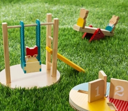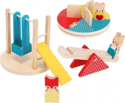 Bereiten Sie Ihre Kinder mit diesem Holzset auf unvergessliche Spielplatzmomente vor. Es enthält drei Tierfiguren, die auf einem fantasievollen Spielplatz zum Leben erwachen: