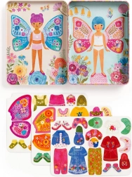 Das Set enthält zwei illustrierte Szenen mit Schmetterlingsdamen, die darauf warten, angekleidet zu werden. Probieren Sie über 40 Magnete mit Kleidung und Schmetterlingsflügeln auf drei Karten aus. Jedes Teil kann nach eigener Vorstellung kombiniert werden.