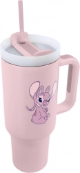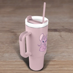 Reisebecher Lilo und Stitch mit rosa Strohhalm