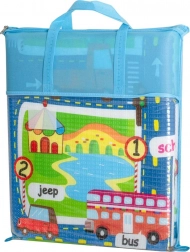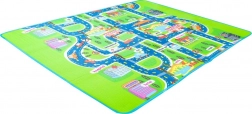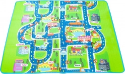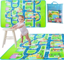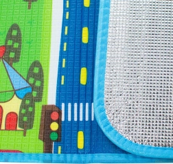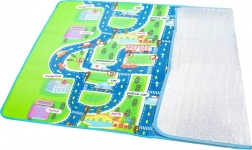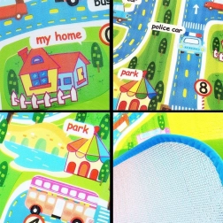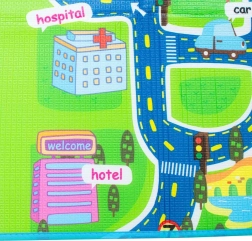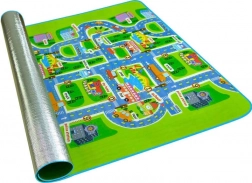 Diese einseitige Spielmatte mit Stadtmotiv bietet Kindern einen sicheren Spielplatz. Sie isoliert gegen Kälte und schützt vor harten Aufprällen. Die Matte kann dank der Thermo-Isolationsschicht auf der Unterseite leicht transportiert werden.
