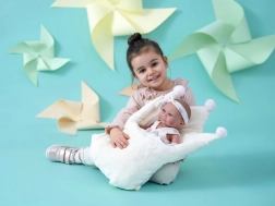 In spanischen Werkstätten wird jede Puppe mit Fokus auf Qualität und authentisches Aussehen geschaffen. Sie eignet sich zum Positionieren und dank beweglicher Gelenke kann sie auch sitzen. All dies macht sie zu einem beliebten Spielzeug für kleinere und größere Kinder ab 3 Jahren.