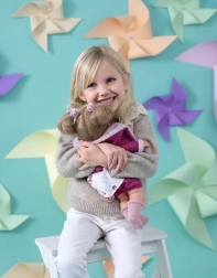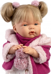 Entdecken Sie die erstaunliche Puppe Joelle von Llorens, die einem echten Kind täuschend ähnlich ist. Nach dem Herausziehen des Schnullers beginnt sie die Worte „Mama“, „Papa“ zu sagen und gibt realistische Weingräusche von sich, die mit einem magnetischen Schnuller beruhigt werden können. Sie ist handgefertigt in Spanien und in einer schönen Geschenkbox verpackt.