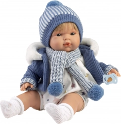 Diese sprechende und weinende Puppe ist mit Funktionen ausgestattet, die unmittelbar nach dem Entfernen der Sicherung aktiviert werden. Die Puppe hat einen weichen Stoffkörper, der angenehm zu berühren ist, und Haare am ganzen Kopf.