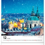 Wandkalender Prag 2026 bietet wunderschöne Ansichten der historisch und kulturell reichen Stadt Prag, hervorgehoben durch zwölf beeindruckende Fotografien. Der Kalender enthält ein übersichtliches Kalendarium, das die Ästhetik der Bilder nicht stört.