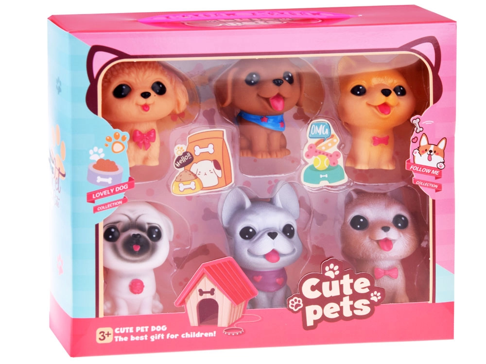 Dieses tolle Set von Gummifiguren ist ideal für Rollenspiele wie Hundesalon, Hundehotel, Welpenkindergarten oder Tierarzt. Wenn Ihr Kind keinen eigenen Hund haben kann, sind diese Figuren eine großartige Alternative.
