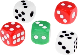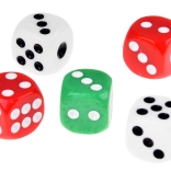 Würfel mit kontraststarken Augen und abgerundeten Kanten für angenehmes Werfen und leichtes Ablesen der Ergebnisse.