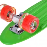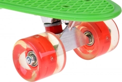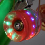 Die Rollen des Skateboards sind aus strapazierfähigem Material gefertigt und mit speziellem Gummi überzogen, was hervorragende Haftung und Vibrationsdämpfung bietet. Ein weiteres Highlight sind die integrierten LEDs, die beim Fahren leuchten und dem Skateboard ein außergewöhnliches Aussehen verleihen, zudem die Sichtbarkeit des Benutzers erhöhen - ganz ohne Batterien! Die LEDs werden durch die magnetische Energie betrieben, die durch das Drehen der Räder entsteht.