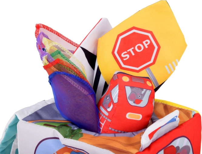 Entdecken Sie die faszinierende Welt des Spielens mit dem weichen sensorischen Würfel! Dieses interaktive Spielzeug fesselt und beschäftigt stetig das Kind und wird zu einem treuen Begleiter in verschiedenen Entwicklungsphasen. Mehr als nur ein Würfel – es ist ein Werkzeug, das förmlich mit Ihrem Kind wächst. Die Fülle an Farben, die Vielfalt der Formen und versteckte Überraschungen ziehen ständig Aufmerksamkeit auf sich und ermutigen zur Erkundung. Das Kind entdeckt neue Texturen, zieht bunte Tücher oder Bälle heraus und lernt die faszinierende Welt der Fahrzeuge und Verkehrszeichen kennen.