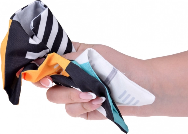 - Farbiger Textilwürfel mit sicherem Spiegel und schwarz-weißen, weichen Griffen
