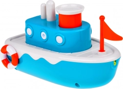 Dieses Kinderschiff bietet ein interaktives Erlebnis mit einem Knopf, der Wasser ausstößt, um den Badespaß zu erhöhen.