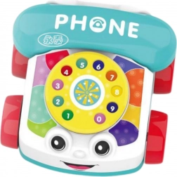 Das Telefon ist mit einer drehbaren Wählscheibe, bunten Elementen und einem lächelnden Gesicht ausgestattet, was das Kind zur Interaktion und Entdeckung der Welt der Klänge, Formen und Bewegungen anregt. Bewegliche Teile, wie die Wählscheibe oder Räder, stimulieren die Neugier des Kindes und ermutigen zu aktivem Erforschen.