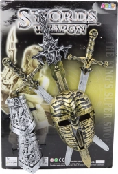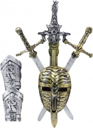 Mit diesem Rittersatz können Kinder zu tapferen Kämpfern werden. Dank der stilisierten Maske erhalten sie ein ritterliches Aussehen und fühlen sich wie im Mittelalter. Das Set beinhaltet drei Schwerter in verschiedenen Größen, eine dekorative Maske und zwei Handschützer, die dem Gesamtlook einen realistischen Ritterstil verleihen.