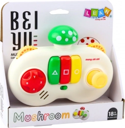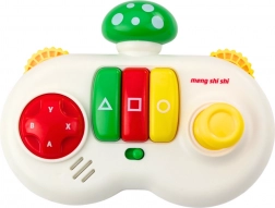 Dieses bunte interaktive Spielzeug ist in Form eines Controllers mit einer Oberseite im Schwamm-Design in Rot, Grün oder Gelb gestaltet und zieht so die Aufmerksamkeit der Kinder auf sich. Die Konsole ist mit bunten Knöpfen, Soundeffekten, drehbaren Rädern mit erhabener Textur und drei zentralen Tasten in Form eines Dreiecks, Quadrats und Kreises ausgestattet.