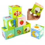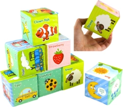 Die Würfel enthalten verschiedene Bilder – Buchstaben, Zahlen oder Wörter in Englisch, was die sprachliche und kognitive Entwicklung des Kindes unterstützt. Jeder Würfel ist so gestaltet, dass er die sensorische Stimulation und die Entwicklung der Feinmotorik anregt, sodass Kinder die Würfel stapeln, drücken, werfen und verschiedene Muster und Farben beobachten können.