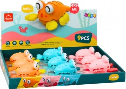 Die Krabbe ist mit einem einfachen Federantrieb ausgestattet, der es Kindern ermöglicht, ihre Bewegung bei jedem Drücken zu beobachten.