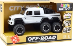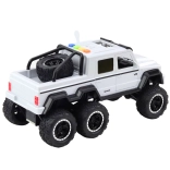 Das Modell hat 6 massive Räder mit profilierten Reifen, die seine Stabilität erhöhen und es ermöglichen, kleinere Hindernisse zu überwinden. Auf dem Dach befinden sich vier Tasten zur Aktivierung von Soundeffekten: Motorstartgeräusche, Hupe, Rückwärtsgang, Sirene und Fernbedienung. Außerdem hat es öffnende Türen, die das Maß an Interaktion und den Realismus des Spiels erhöhen.