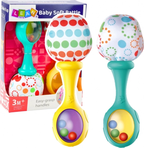 Im Inneren der Rassel befinden sich bunte Kugeln, die sich bei Bewegung sanft drehen und ein sanftes Geräusch erzeugen - kinderfreundlich und nicht störend für Eltern. Das gesamte Set ist sorgfältig in einer ästhetischen Box verpackt, die den Inhalt zeigt und das Set zu einem idealen Geschenk macht.