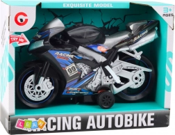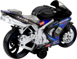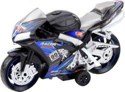 Das schwarzblaue Motorrad ist aus robustem Kunststoff gefertigt, der vor Beschädigungen geschützt ist, und mit starken Rädern für sicheres Fahren auf verschiedenen Oberflächen ausgestattet. Beim Drücken der Taste werden Sound- und Lichteffekte aktiviert – realistische Motorgeräusche und eine Lichtshow sorgen für ein unvergessliches Erlebnis.