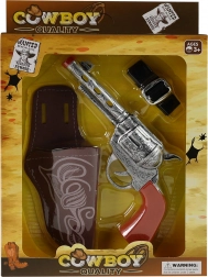 Werde zum Helden des Wilden Westens mit diesem geschickten Set für kleine Cowboys! Enthält eine Pistole mit Soundeffekten, ein Holster und einen Befestigungsgürtel.