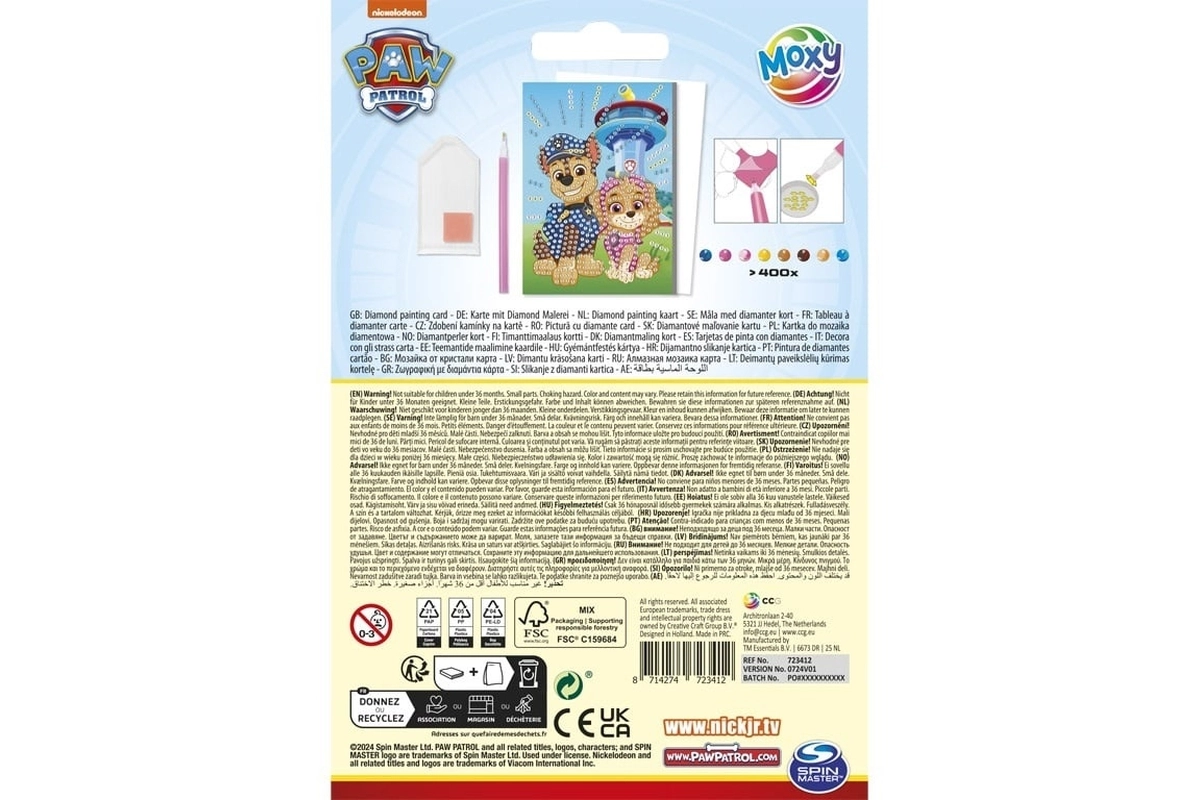 Gestalten Sie Ihr eigenes funkelndes Bild mit den beliebten Helden aus PAW PATROL. Dieses Set ist ideal für Kinder und Einsteiger – die größeren Diamanten lassen sich leicht greifen und präzise auf dem vorgedruckten Untergrund platzieren. Das fertige Bild können Sie verschenken oder im beiliegenden Umschlag aufbewahren.