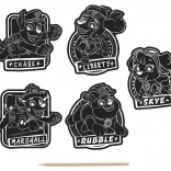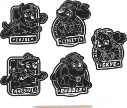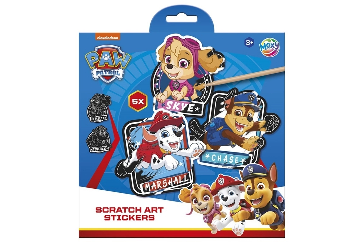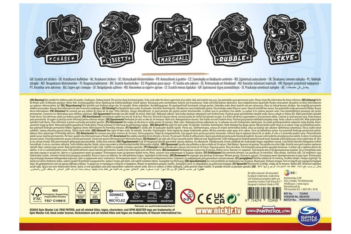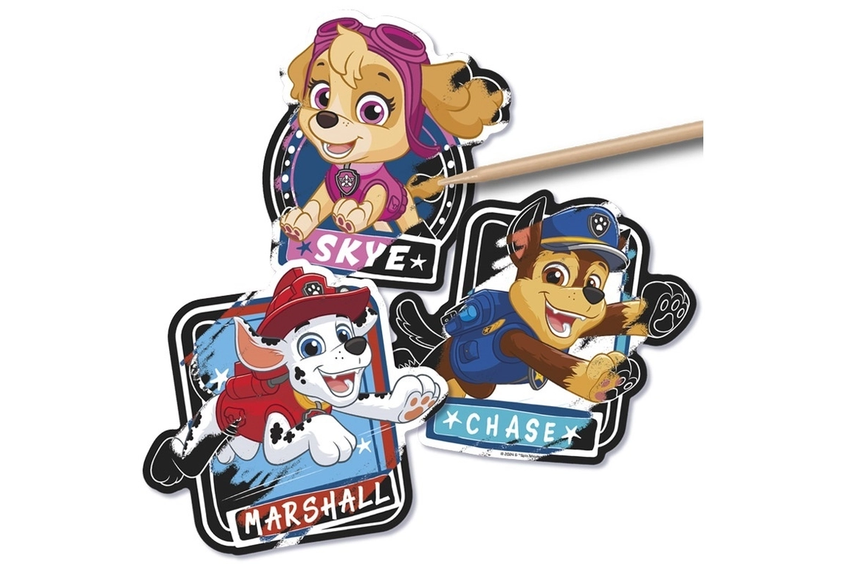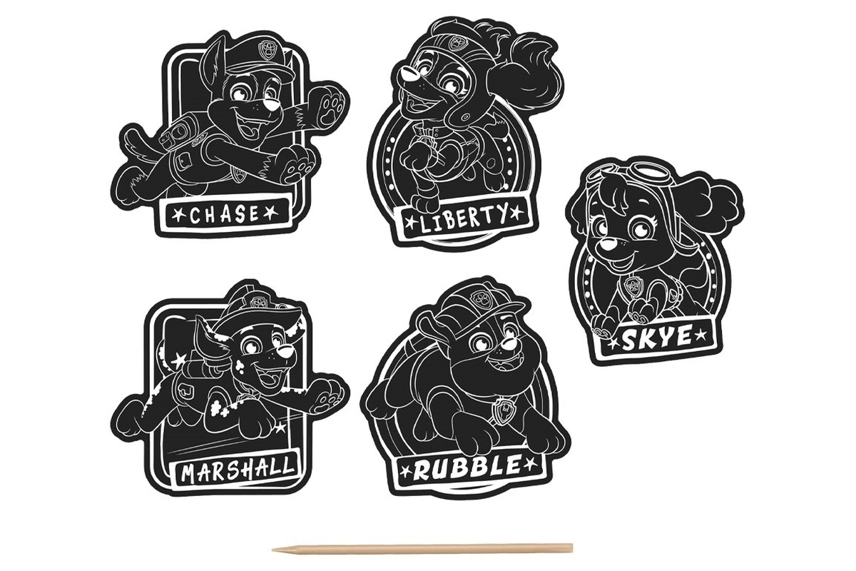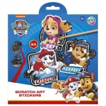 Gestalte deine eigene Aufkleberkollektion mit Motiven der PAW PATROL. Du musst nur die schwarze Schicht vorsichtig abkratzen und nach und nach kommen die leuchtenden Farben und Details der einzelnen Figuren zum Vorschein. Die fertigen Motive sind selbstklebend, sodass du sie sofort zum Verzieren von Schulutensilien, Geschenken oder Grußkarten verwenden kannst.