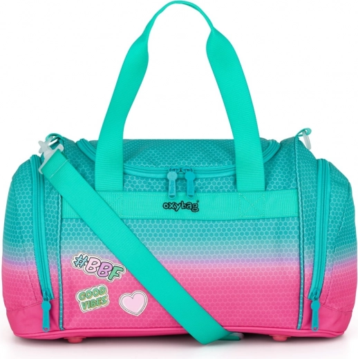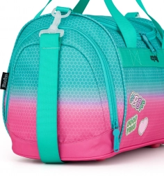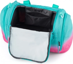 Die Tasche besticht durch ein Gradient-Design, das von Türkis zu Rosa übergeht. Diese stilvolle Kombination macht die Tasche nicht nur praktisch, sondern auch modisch.
