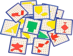 Beidseitige Musterkarten in verschiedenen Schwierigkeitsgraden helfen Kindern, Formen, Farben, Symmetrien und Winkel zu erkennen. Einfach die passenden Gummibänder spannen und die Vorlage nachbilden.