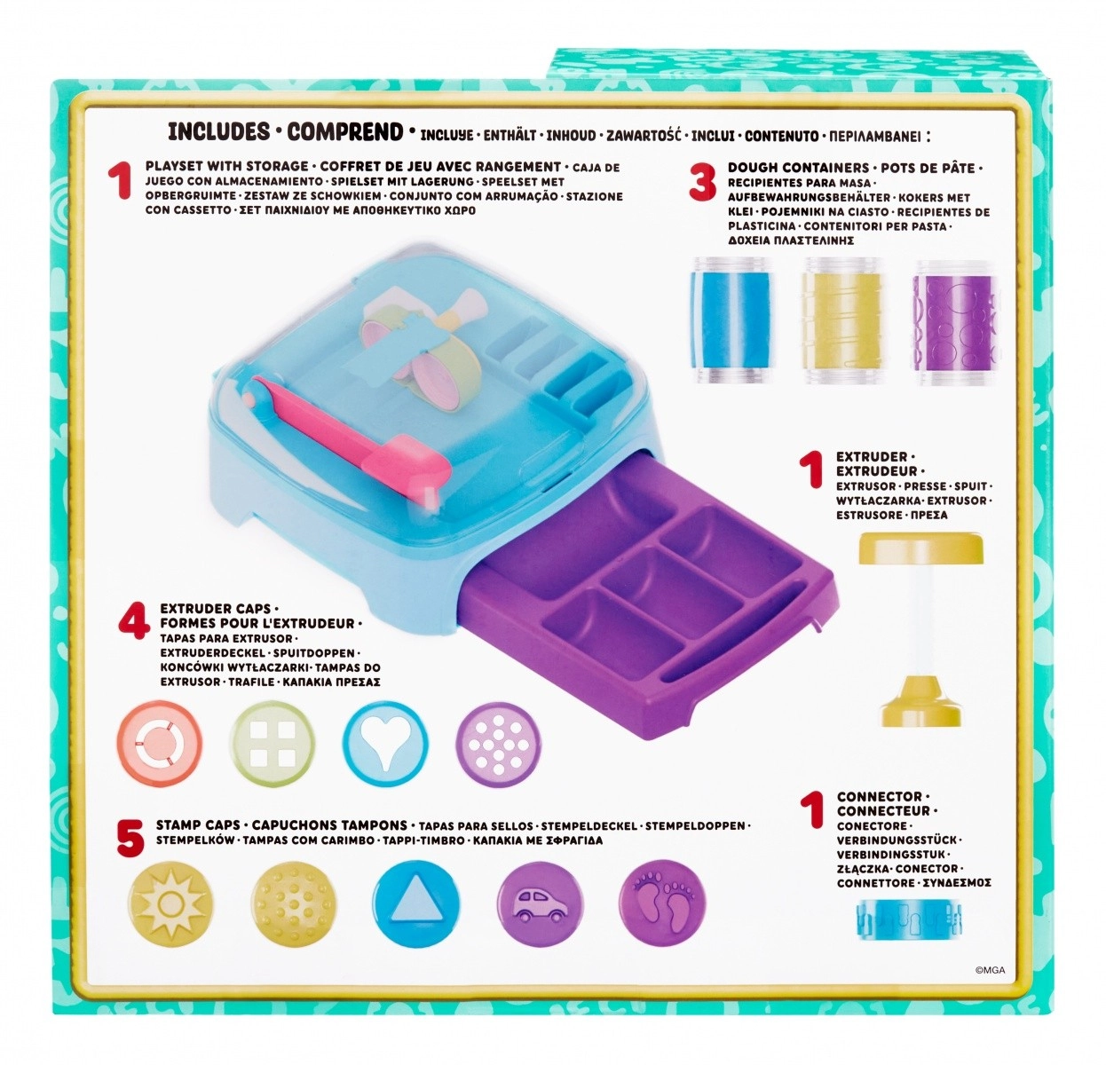 Jede Dose mit Masse ist bereit für den Spaß mit Stempeln und weiteren Accessoires. Im Paket finden Sie das Spielset Dough Studio mit 3 Tuben Modelliermasse, 5 lustigen Stempelverschlüssen, 1 Prägervorsatz und 4 Endstücken für die Gestaltung weiterer Formen aus Ihrer Masse.