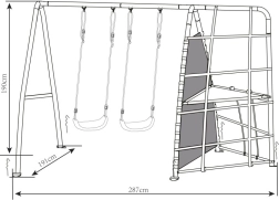 Die Montage ist einfach und die gesamte Struktur passt sich leicht an den Gartenraum an. Sorgen Sie für gesunde Bewegung Ihrer Kinder in ihrem eigenen Spielbereich.