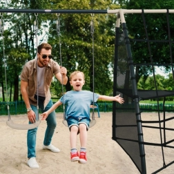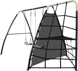 Die einzelnen Komponenten wurden mit Fokus auf Komfort und Sicherheit entworfen. Starke Bodenanker bieten Stabilität, selbst wenn die Kinder richtig in Fahrt kommen. Polypropylensitze sind leicht, widerstandsfähig und einfach zu reinigen. Die ergonomische Form und die richtige Tiefe des Kletternetzes gewährleisten Komfort und weitere Attraktionen beim Spielen.