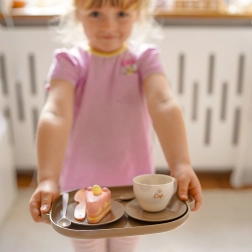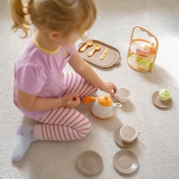 Leichte, kinderangepasste Teile mit abgerundeten Kanten liegen gut in kleinen Händen und unterstützen die Feinmotorik. Das Set in Pastellfarben ist ideal für den Alltag – Spielen und Lernen in der Rolle von Gastgeber und Service.