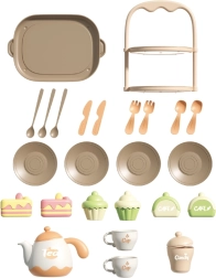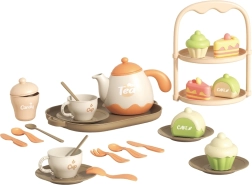 Teekanne, Tassen, Untertassen, Tablett und Dessertständer – Kinder können Tee einschenken und Leckereien servieren wie bei einem echten Fest.