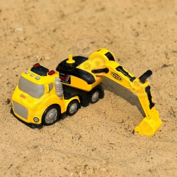 Der Arm mit Schaufel lässt sich heben und senken, sodass Sand oder kleine Spielzeuge leicht aufgenommen und ausgeschüttet werden können. Ideal für das Spiel auf der Baustelle.